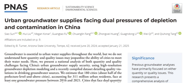 五、孙思奥、方创琳等在PNAS发文揭示中国城市地下水供给面临水量与水质的双重挑战