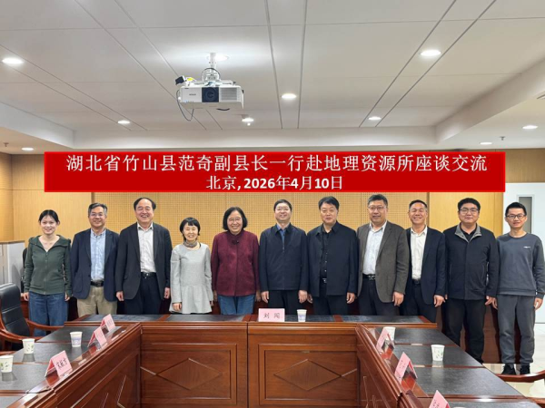 2026年4月10日,湖北省竹山县副县长范奇携竹山县农业农村局局长陈燕青、竹山县种子管理局局长张世宏、竹山县溢水镇何家湾村优秀青年人才黄志成等一行赴中国科学院地理科学与资源研究所(下文简称地理资源所)座谈交流。地理资源所地理标志研究中心首席科学家、联合国粮农组织(FAO)“一国一品”亚太区域组织组副主席刘闯研究员、地理资源所地理标志研究中心主任宋献方、“地标生境”案例第23例——竹山茶北亚热带低中山案例首席科学家地理资源所研究员刘苏峡、地理资源所正高级工程师杨丽虎出席会议。