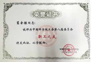 2017年11月28日,中国科学院工会第九次会员代表大会召开,大会选举产生了中国科学院工会第九届委员会,同时对五年来在工会工作中的先进集体和先进个人进行了表彰。