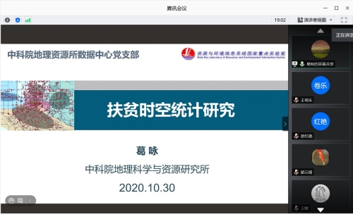 到2020年,确保现行标准下农村贫困人口实现全面脱贫是中国的重大政治任务。展望全球,到2030年,在全球所有人口中消除极端贫困是联合国可持续发展要实现的首要目标。中国科学院地理科学与资源研究所是国家精准扶贫工作成效第三方评估主持单位。长期从事该项评估工作的葛咏研究员围绕食物浪费与贫困的关系,首先从贫困发生的地理环境说起,介绍了我国贫困区总的分布趋势。结合数据中心支部在地理信息研究领域的空间分析能力,介绍了贫困在不同国家地区所呈现的空间聚集和空间异质特征和规律。时空统计作为炼规律的有效手段,扶贫时空统计可为因地制宜、有效实施扶贫战略提供决策支持。葛咏研究员进一步结合实际案例,介绍了利用时空统计获得的武陵山片区扶贫成效空间相关性分析、贵州省片区贫困县贫困发生率空间相关性分析等研究成果。最后结合当前新的科学发展态势和疫情影响下的社会经济发展条件,指出了面向扶贫减贫和乡村振兴,发展扶贫时空统计学的一些的挑战和思考,以及作为一名科技工作者的使命担当。