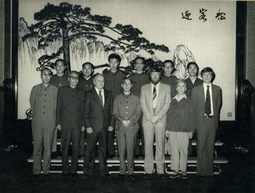 1980年8月,方毅副总理(前左4)在北京人民大会堂会见来访的澳大利亚南极局局长麦科(前左3),副局长克里(前左5),院地学部副主任王遵基(前右2)和海洋局局长罗钰如(前左2),以及董兆乾(后左2)张青松(后右2)等参加。