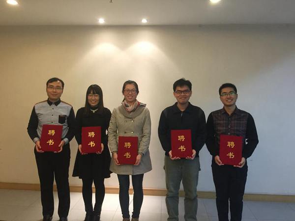 第七届博士后联谊会理事会成员(从左至右:柴思跃、宁佳、杨俊杰、钟帅、冯棣)
