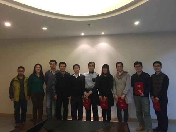 最后,人事处相关负责人为第七届博士后联谊会理事会成员颁发聘书,并与参会博士后人员合影。