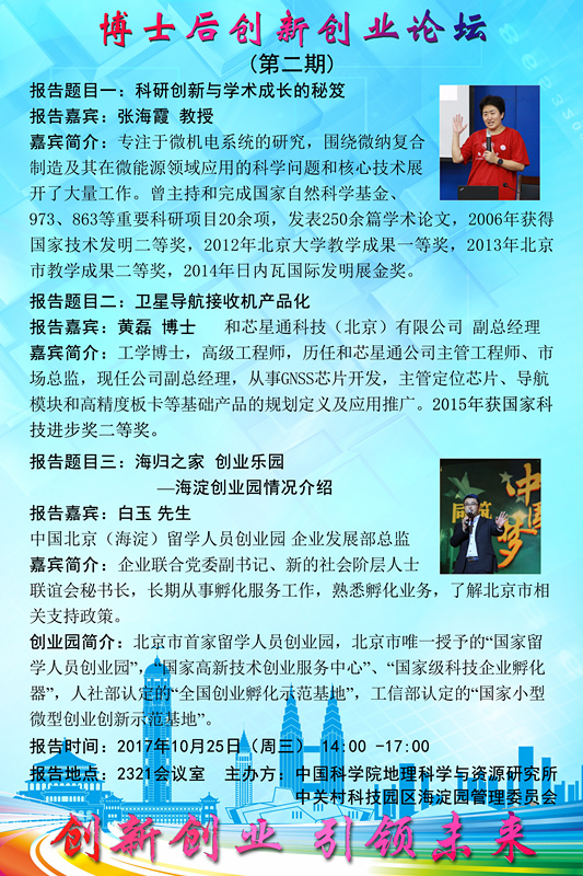 为响应国家“大众创业、万众创新”的号召,提高博士后创新创业、服务经济社会发展能力,探索“研究型、创新型、创业型”三位一体的博士后人才培养模式,推进产学研结合,定于10月25日举办 “博士后创新创业论坛(第二期)”。