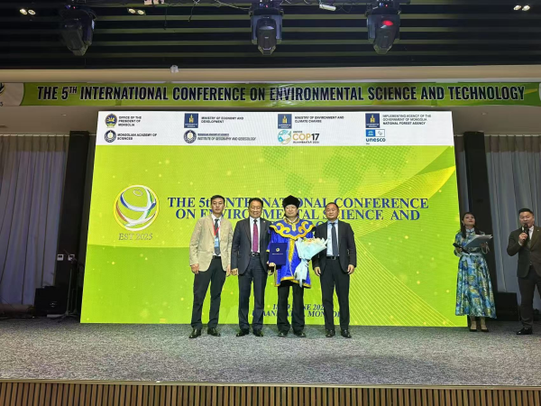 6月18日-19日,考察队应邀参加蒙古国环境科学与技术国际会议(International Conference on Environmental Science and Technology 2025,简称EST2025),本次会议由蒙古国总统办公室、蒙古国经济和发展部、蒙古国环境和气候变化部、蒙古国林业局、蒙古国科学院、蒙古国科学院地理与地球生态研究所等共同主办,为明年在乌兰巴托举办的《联合国防治荒漠化公约》第十七次缔约方大会(COP17)奠定基础。董锁成作为特邀嘉宾,作题为“China and Mongolia Jointly Construct Ecological Security Shelter and Green Development Mode in Mongolian Plateau”主旨报告,全面展示了中国西北、黄河流域与蒙古高原荒漠化防治与绿色发展模式与取得的成绩,李富佳、程昊、李飞等分别作分会场主题报告和分会场主持。