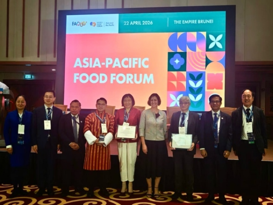 2026年4月22日,在联合国粮农组织和文莱政府联合主办的首届“亚太区域粮食论坛” (APFF)大会上,联合国粮农组织总干事助理兼亚太区代表阿卢·多洪(Alue Dohong)向中国科学院地理资源所代表刘闯研究员颁发联合国粮农组织亚太区域“一国一品”“卓越中心”证书。该证书由粮农组织副总干事贝丝・贝赫多尔博士签发。